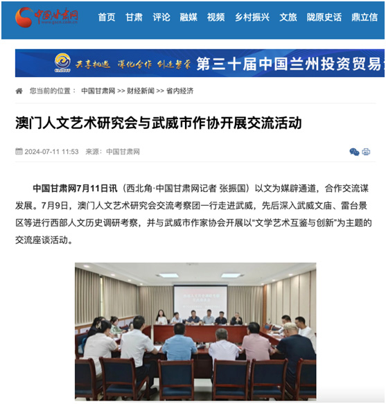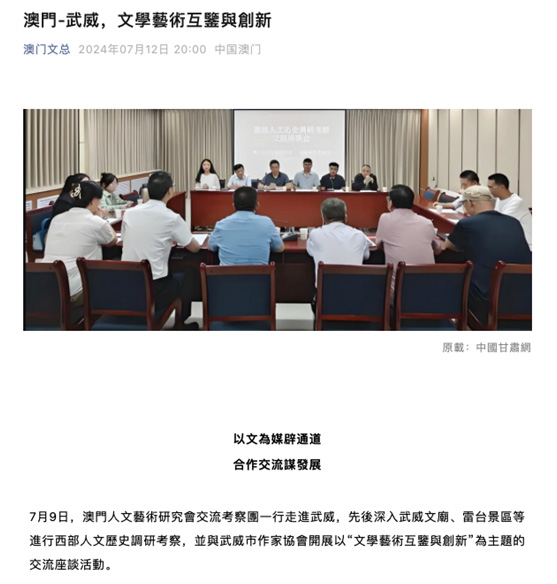 此次澳門人文藝術研究會交流考察團在甘肅的深度走訪調研活動,不僅加深了澳門與甘肅兩地之間的文化交流與合作,更為兩地文化藝術的繁榮發展注入了新的動力。值得一提的是,此次活動獲得了中國甘肅網、澳門文總、西北師範大學傳媒學院、武威融媒傳播等媒體或單位的關注與報道,傳播廣泛,影響深遠。